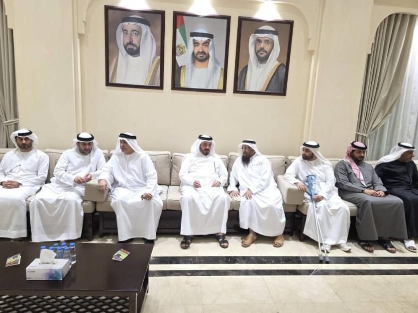 قدم الشيخ عبدالله بن محمد آل ثاني المستشار بمكتب سمو الحاكم والشيخ ماجد بن سلطان القاسمي رئيس دائرة الضواحي بالشارقة والشيخ عبدالله بن سلطان بن عبدالله القاسمي وعدد من الشيوخ، واجب العزاء بوفاة المغفور له بإذن الله تعالى غانم خليفة بن غانم الحميري.