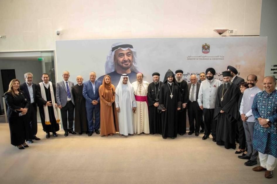 فمن جانبه أعرب المطران باولو مارتينيلي، النائب الرسولي لجنوب الجزيرة العربية، باسم الكنيسة الكاثوليكية، عن عميق الامتنان للقيادة الإماراتية على ما توفره من دعم ورعاية وحماية مستمرة للجميع، مثمناً الدور البارز للشيخ نهيان بن مبارك آل نهيان وزير التسامح والتعايش، في تعزيز ثقافة الحوار بين الأديان.
