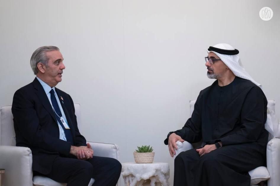 وجرى خلال اللقاء استعراض علاقات التعاون والصداقة بين دولة الإمارات العربية المتحدة وجمهورية الدومينيكان، وبحث سُبل توسيع نطاق الشراكات الاستراتيجية في أبرز القطاعات الحيوية ذات الاهتمام المشترك، بما يعود بالخير والنفع والنماء على البلدين وشعبيهما الصديقين.