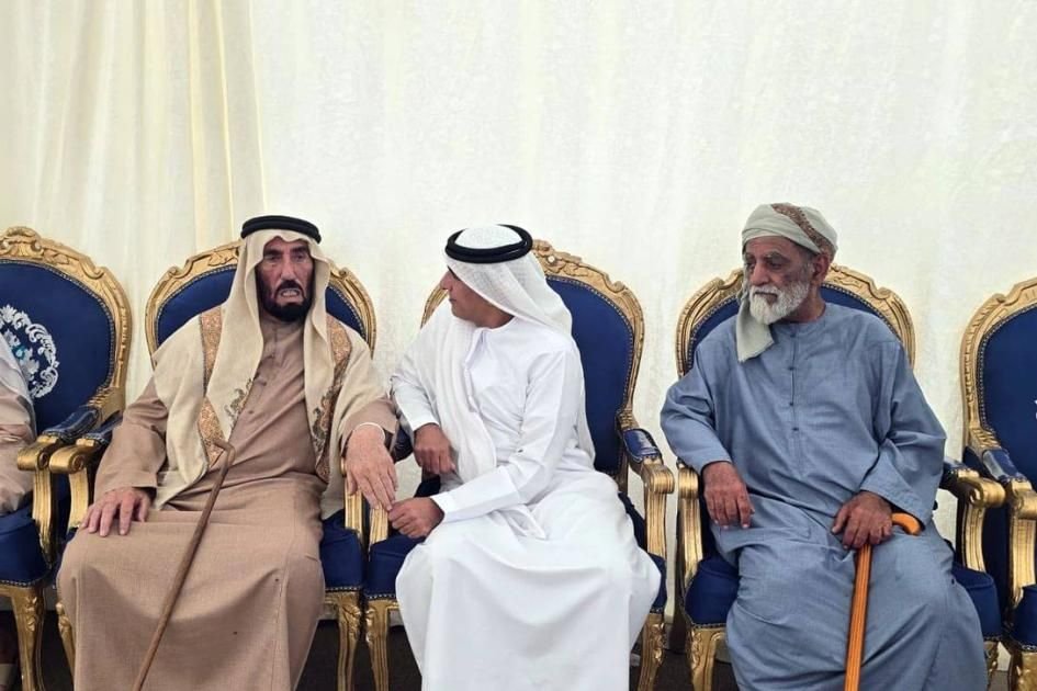 وأعرب الشيخ سالم بن سلطان القاسمي خلال زيارته خيمة العزاء في منطقة الساعدي برأس الخيمة ، عن خالص تعازيه ومواساته إلى ذوي الفقيد سائلاً الله العلي القدير أن يتغمده بواسع رحمته، ويسكنه فسيح جناته، ويلهم أهله وذويه الصبر والسلوان.