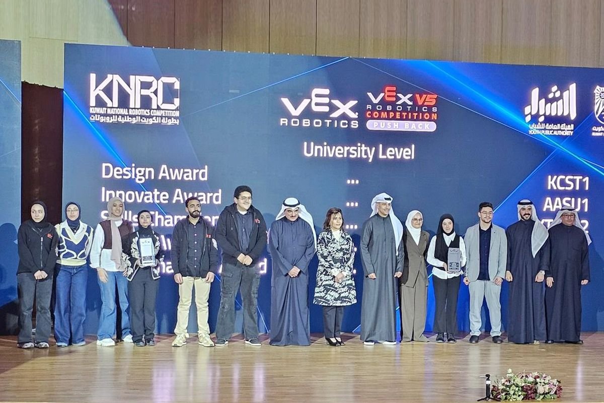 هذا الخبر يأتيكم برعاية موقع عيون الجزيرة الاخباري ويتمنى لكم قضاء وقت ممتع في قراة هذا الخبر أعلنت الجامعة الأمريكية بالكويت (AUK) فخرها بفوز طلبة من كلية الهندسة والعلوم التطبيقية (CEAS) بجائزة «أفضل روح رياضية»، وتأهلهم للنهائيات ضمن فئة بطولة VEX للروبوتات في مسابقة الكويت للروبوتات (KNRC) 2026 والتي أقيمت يومي 7 و8 الجاري، بمشاركة فرق جامعية من مختلف أنحاء الكويت.