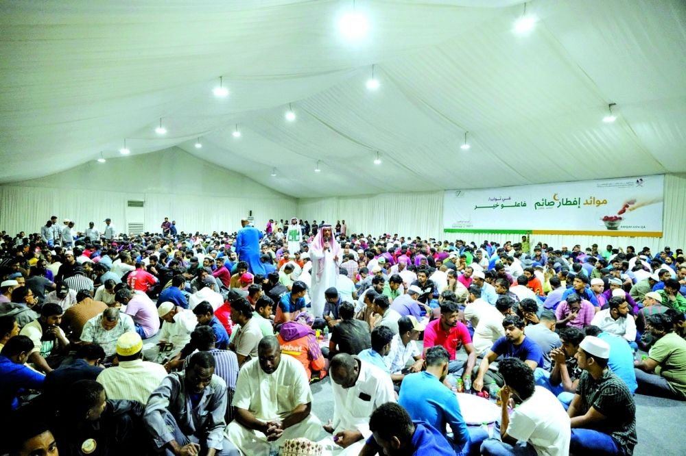 تشهد خيمة «إفطار صائم» بمدينة الوكرة، التي تنظمها وتشرف عليها الإدارة العامة للأوقاف بوزارة الأوقاف والشؤون الإسلامية، إقبالًا يوميًا يقارب (1500) صائم (في ثواب فاعلي خير)، في إطار مشروع وقفي مؤسسي متكامل يمتد إلى عشرة مواقع موزعة على مناطق الدولة، ليستهدف تفطير نحو (360) ألف صائم طوال شهر رمضان المبارك.
