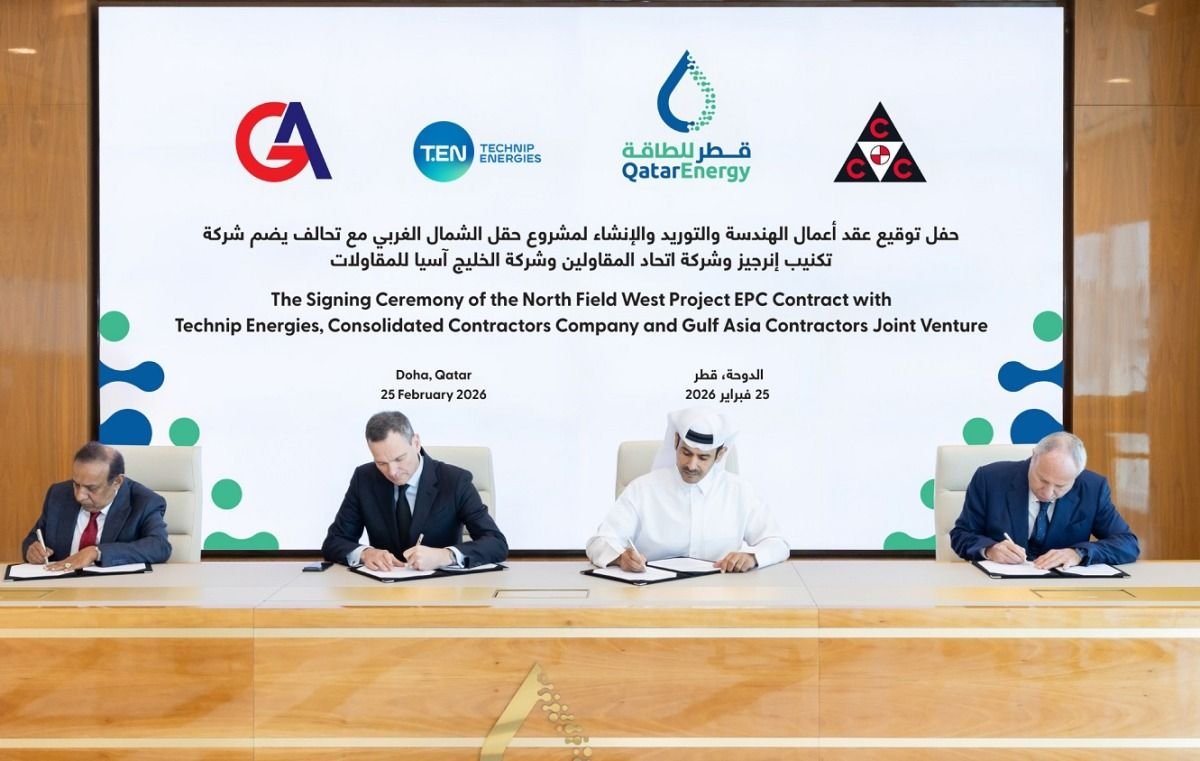 وقع العقد كل من سعادة المهندس سعد بن شريده الكعبي، وزير الدولة لشؤون الطاقة، العضو المنتدب والرئيس التنفيذي لقطر للطاقة، والسيد آرنو بييتون، الرئيس التنفيذي لشركة تكنيب إنرجيز، والسيد سامر خوري، رئيس مجلس إدارة شركة اتحاد المقاولين، والدكتور رافي بيلاي، رئيس مجلس الإدارة والرئيس التنفيذي لشركة خليج آسيا للمقاولات.