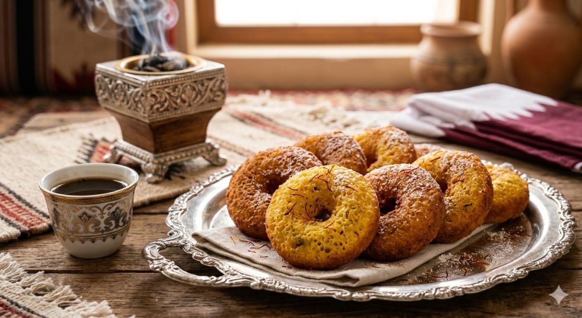يُرفع من الزيت ويُوضع على ورق نشاف، ويُقدم دافئاً أو بارداً مع القهوة العربية.