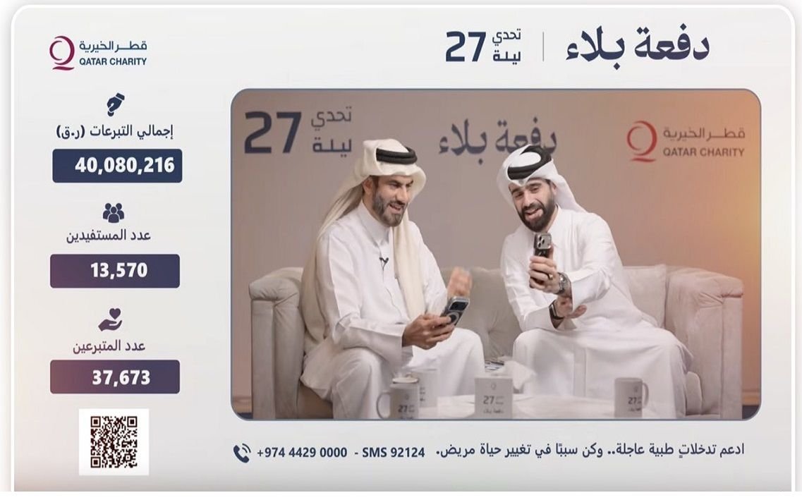 جمعت قطر الخيرية، خلال حملة "تحدي ليلة 27" تبرعات وصلت إلى أكثر من 40 مليون ريال، وذلك لتنفيذ مبادرات طبية إنسانية منقذة للحياة، ستنفذ في عدة دول حول العالم إضافة إلى دولة قطر.