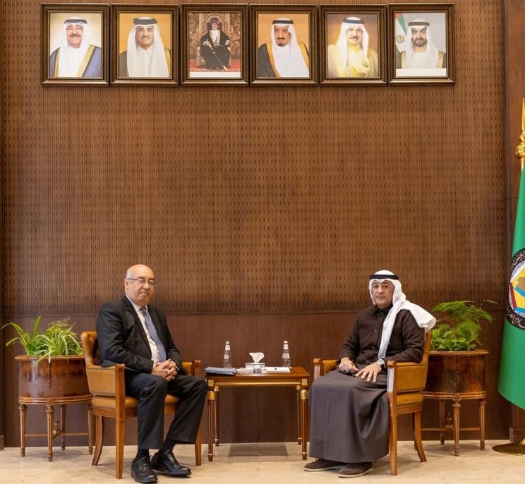 بحث السيد جاسم محمد البديوي الأمين العام لمجلس التعاون لدول الخليج العربية، اليوم، مع السيد صلاح الدين زكي خالد ممثل منظمة الأمم المتحدة للتربية والعلم والثقافة "اليونسكو" لدى دول الخليج واليمن ومدير مكتبها بالدوحة، سبل تعزيز التعاون المشترك في مجالات التعليم.