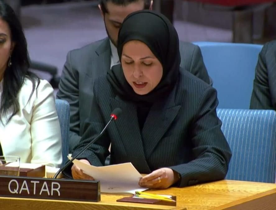 جاء ذلك في بيان دولة قطر الذي ألقته سعادة الشيخة علياء أحمد بن سيف آل ثاني المندوب الدائم لدولة قطر لدى الأمم المتحدة، أمام اجتماع الإحاطة لمجلس الأمن حول الحالة في الشرق الأوسط بما فيها قضية فلسطين، في مقر الأمم المتحدة بنيويورك.