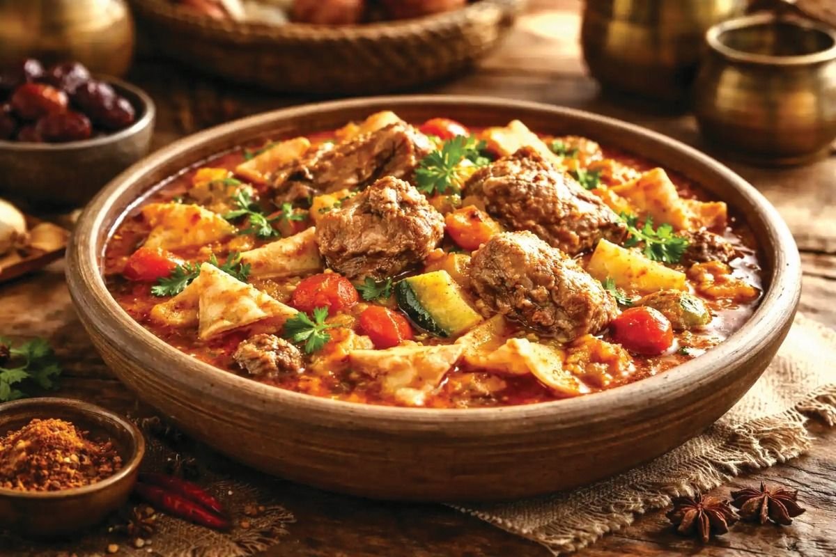 1 كيلو لحم غنم طازج (بالعظم ليعطي المرق دسماً ونكهة)