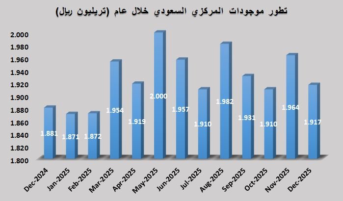 مباشر - بنوك السعودية: ارتفعت موجودات البنك المركزي السعودي "ساما"، بنسبة 1.89%، بنهاية شهر ديسمبر2025، مقارنة بالشهر نفسه من عام 2024، بدعم الودائع لدى البنوك بالخارج.