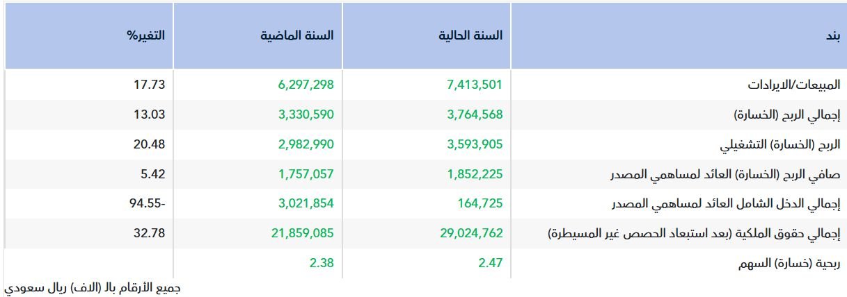 وارتفعت الإيرادات بنسبة 17.73% لتصل إلى 7.41 مليار ريال، مقارنة بـ6.30 مليار ريال في عام 2024.