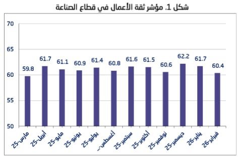 وسجل قطاع التشييد خلال شهر فبراير / شباط 2026 مستوى متفائل في مؤشر ثقة الأعمال بلغ 60.6نقطة، ليؤكد استمرار الثقة الإيجابية لدى منشآت القطاع، رغم التراجع بنسبة 1.6% مقارنة بشهر يناير 2026، حيث سجل خلاله 61.6 نقطة.