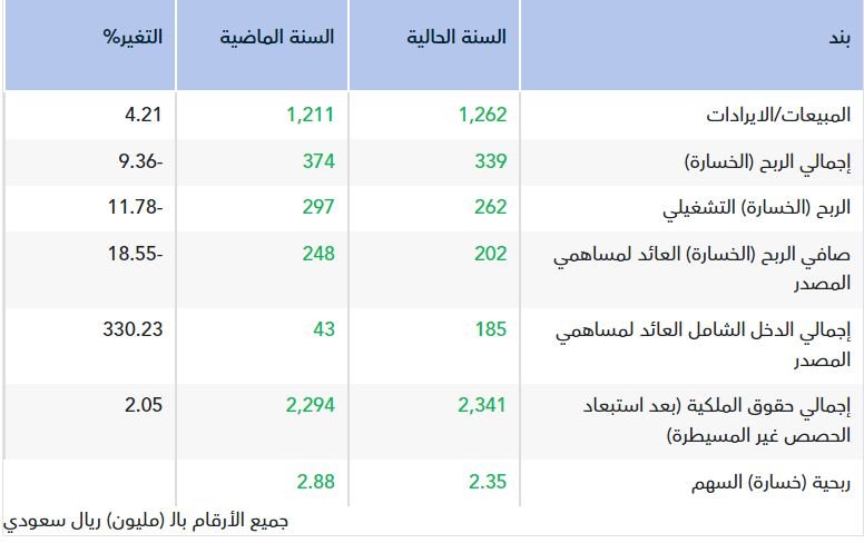 وأرجعت الشركة تراجع الأرباح السنوية؛ نتيجة انخفاض مجمل الربح بسبب ارتفاع تكلفة الإيرادات، وانخفاض إيرادات الاستثمار (إيرادات توزيعات أرباح وإيرادات مرابحات)، وتسجيل خسائر من إعادة تقييم استثمارات بالقيمة العادلة من خلال الربح أو الخسارة، بالإضافة إلى مخصص الخسائر الائتمانية المتوقعة.