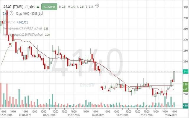 وشهد سهم الصادرات مع بداية عام 2026 حركة صاعدة قوية؛ وذلك بعد أن كان يتداول ضمن قناة هابطة ممتدة من العام الماضي، وقد تمكن السهم من اختراق هذه القناة إلى الأعلى؛ مدعوماً بارتفاع ملحوظ في أحجام التداول، في إشارة إلى تحسن الزخم الشرائي.