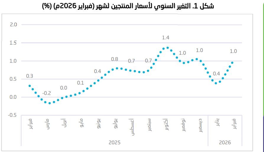 الرياض – مباشر: سجل الرقم القياسي لأسعار المنتجين في المملكة العربية السعودية ارتفاعاً بلغت نسبته 1% خلال شهر فبراير/ شباط 2026م على أساس سنوي، حيث كانت الصناعة التحويلية هي المؤثر الأكبر في التضخم.