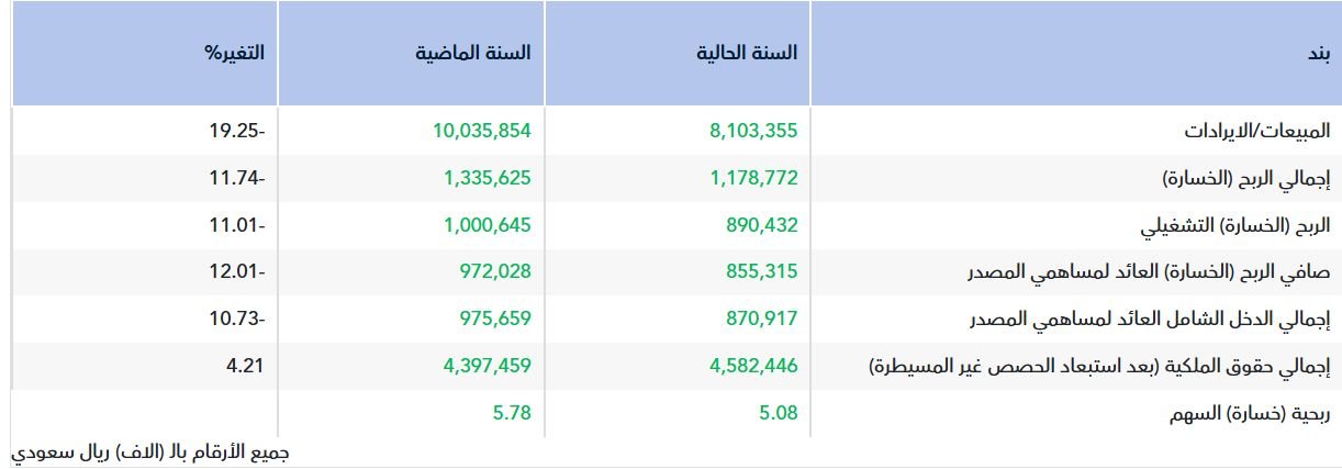 وبلغت ربحية السهم خلال عام 2025 نحو 5.08 ريال، مقارنة بـ 5.78 ريال في عام 2024.