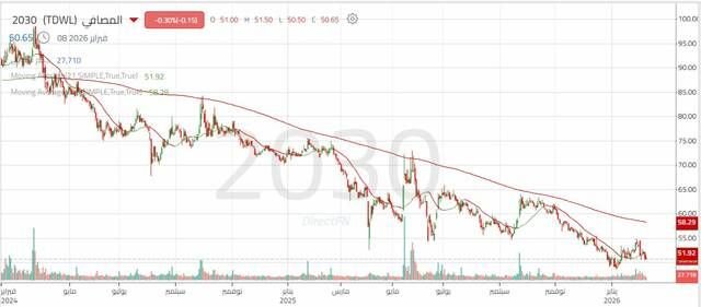 مباشر للأبحاث: يتحرك سهم شركة المصافي العربية السعودية "المصافي" ضمن اتجاه هابط يعكس ضغوطاً واضحة على الأداء السعري خلال الفترة الأخيرة. حيث تظهر الحركة استمرار تسجيل مستويات أقل والتداول دون المتوسط المتحرك؛ ما يؤكد سيطرة القوة البيعية.