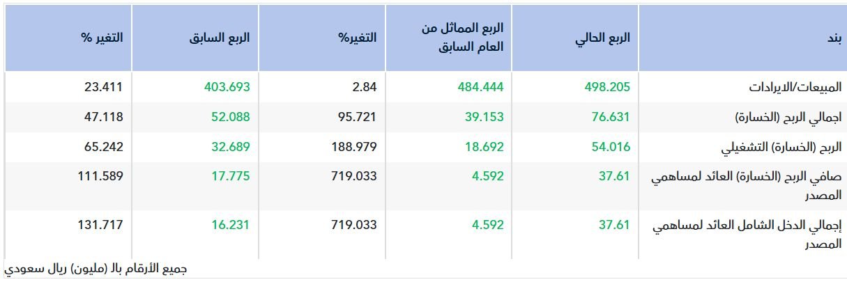 وأوضحت الشركة في بيان على "تداول"، إن صافي الربح العائد لمساهمي الشركة ارتفع إلى 37.61 مليون ريال، مقابل 4.59 مليون ريال في الربع المماثل من عام 2024.