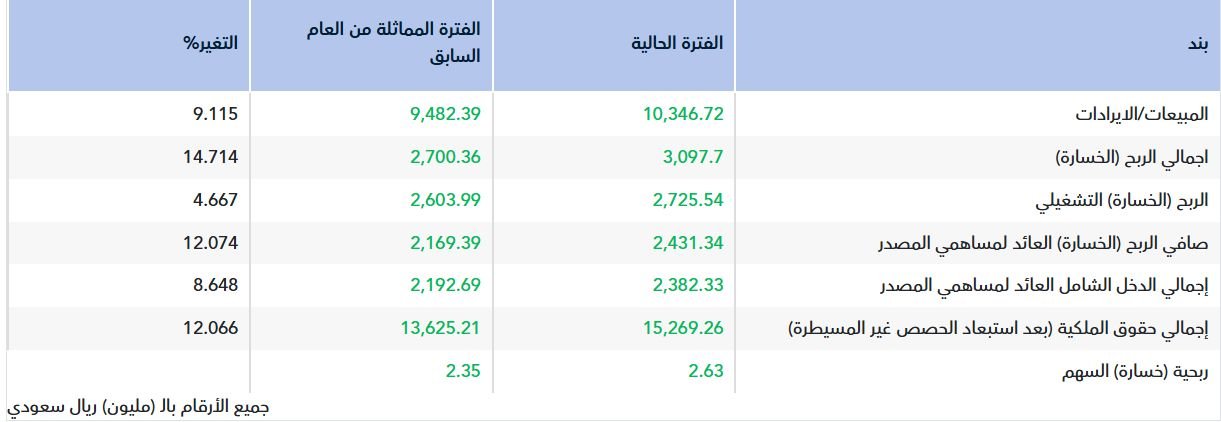 وأضافت فى بيان على "تداول" اليوم الاثنين، أن صافي الربح العائد لمساهمي الشركة ارتفع إلى 2.43 مليار ريال، مقابل 2.17 مليار ريال في العام السابق.
