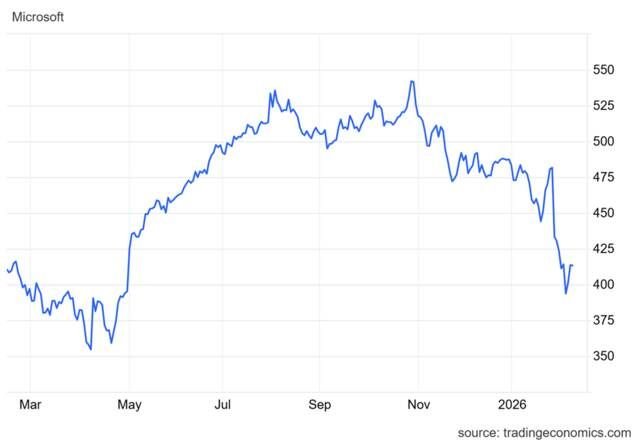 مباشر للأبحاث- حقق سهم "مايكروسوفت" (MSFT) قمة تاريخية جديدة بالقرب من 553.50 دولار في شهر يوليو عام 2025، ولكن سرعان ما واجهت الأسعار ضغوط بيعية حادة، حيث امتد التصحيح حتى شهر فبراير من عام 2026.
