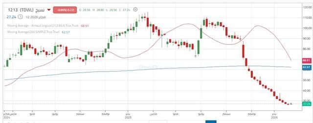 ومع بداية أغسطس، بدأ السهم في تصحيح حاد امتد حتى فبراير 2026؛ ليصبح ضمن اتجاه هابط رئيسي بعد فقدان مستويات الدعم المهمة.