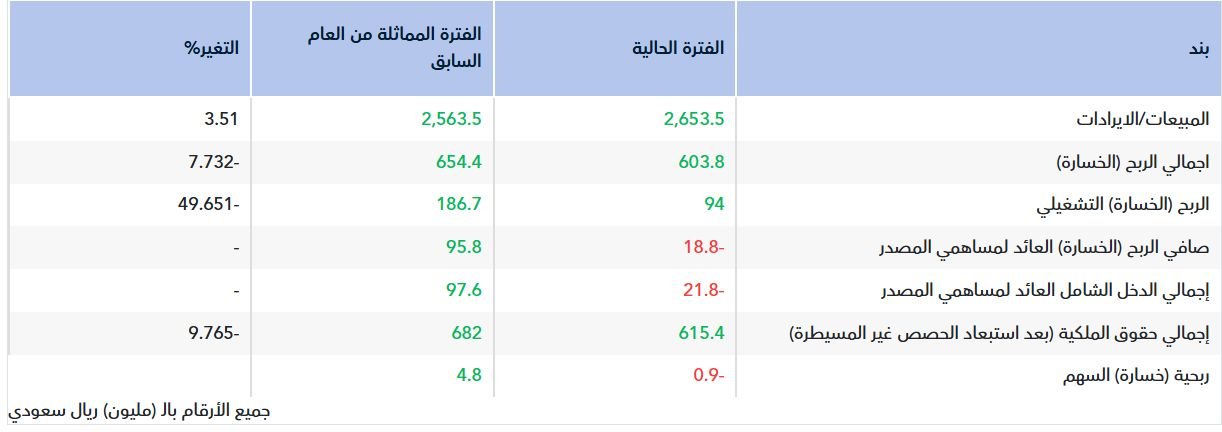وبلغت خسارة السهم 0.9 ريال، مقارنة بربحية 4.8 ريال للسهم في عام 2024.