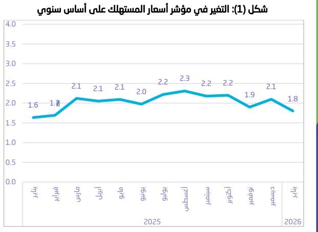 الرياض – مباشر: سجل الرقم القياسي لأسعار المستهلك بالمملكة العربية السعودية ارتفاعا على أساس سنوي خلال شهر يناير/ كانون الثاني 2026م بلغت نسبته 1.8%.