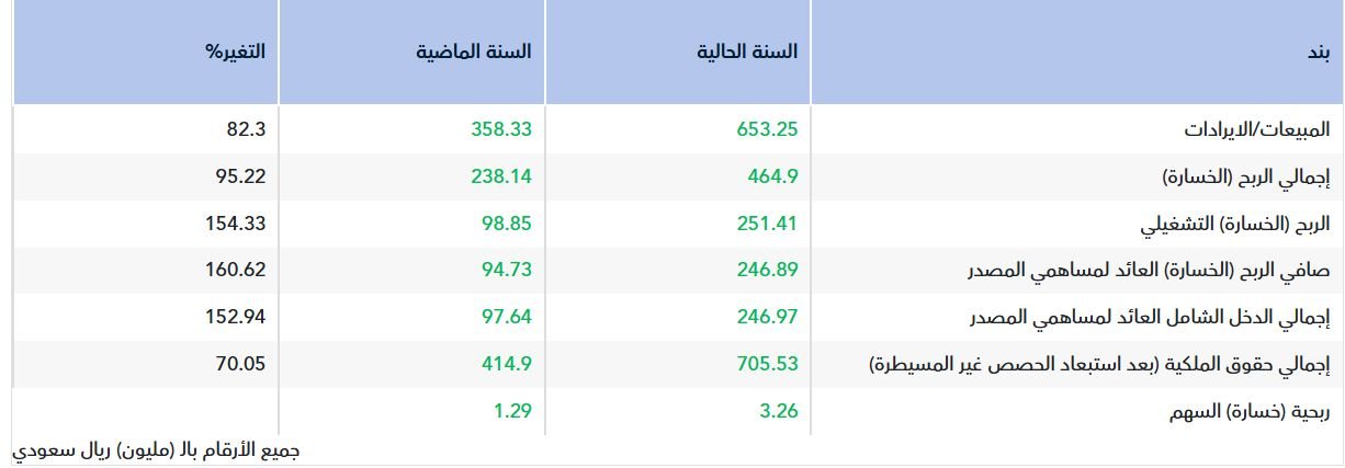 وارتفعت إيرادات الشركة بنسبة 82.3% خلال عام 2025، لتصل إلى 653.25 مليون ريال، مقابل 358.33 مليون ريال في عام 2024 .
