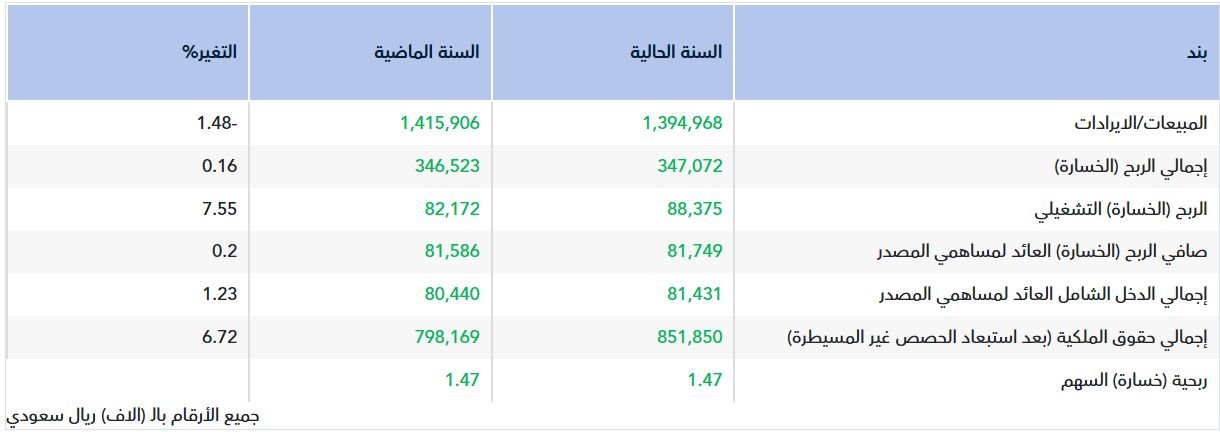 وتراجعت إيرادات الشركة بنسبة 1.48% خلال عام 2025، لتصل إلى 1.395 مليار ريال، مقابل 1.416 مليار ريال في عام 2024.