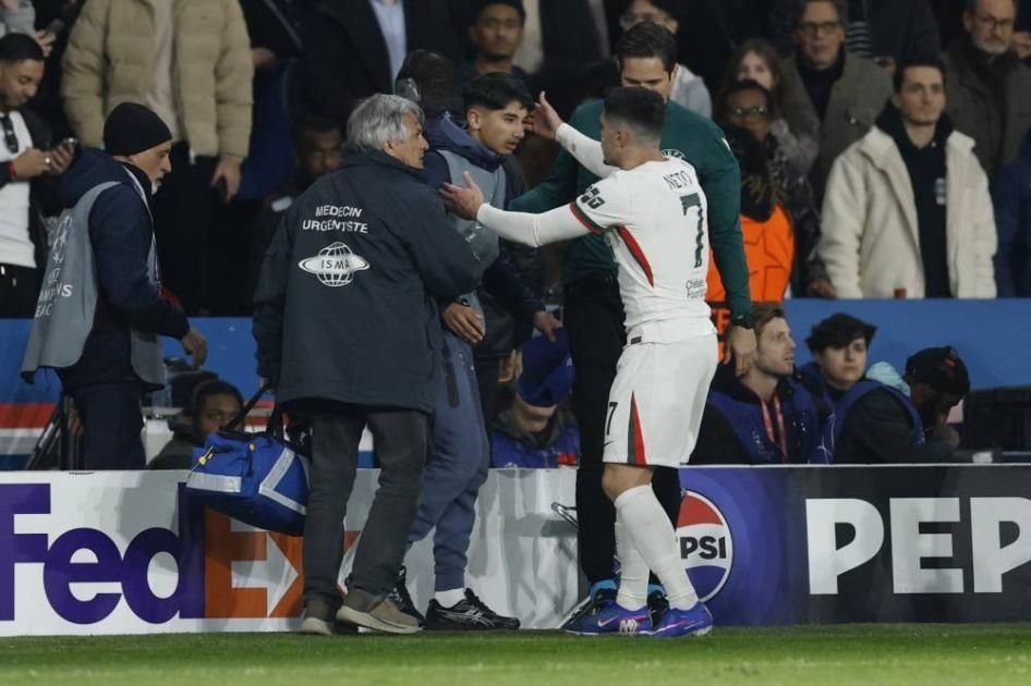 نجا نجم تشيلسي بيدرو نيتو من الطرد بعد إقدامه على دفع جامع كرات باريس سان جيرمان وإسقاطه أرضاً في الدقائق الأخيرة من مباراة الهزيمة 5-2 في العاصمة باريس.