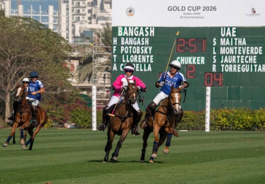 قادت سمو الشيخة ميثاء بنت محمد بن راشد آل مكتوم فريقها «الإمارات» للفوز على فريق بنجاش دودسون وهوريل بعشرة أهداف مقابل ثمانية في المباراة الافتتاحية المثيرة لكأس دبي الذهبية للبولو 2026، التي تستمر منافساتها حتى الرابع عشر من شهر فبراير على ملاعب نادي ومنتجع الحبتور للبولو والفروسية بمشاركة ستة فرق وبهانديكاب «20 جول».