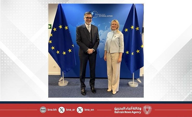وأكد السفير حرص مملكة البحرين على تعزيز التعاون والشراكات مع الاتحاد الأوروبي بجميع أجهزته الإدارية، بما يحقق المصالح المشتركة لكلا الجانبين في ترسيخ الأمن والسلام ودعم التنمية المستدامة.