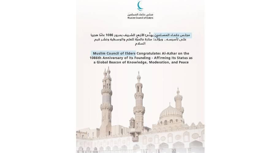 وجدد مجلس حكماء المسلمين اعتزازه بمكانة الأزهر الشريف ودوره العالمي الرائد، داعياً الله تعالى أن يديم عليه رسالته العلمية والإنسانية، وأن يوفِّق علماءه وطلابه لمواصلة مسيرته في نشر العلم والخير وصناعة السلام.