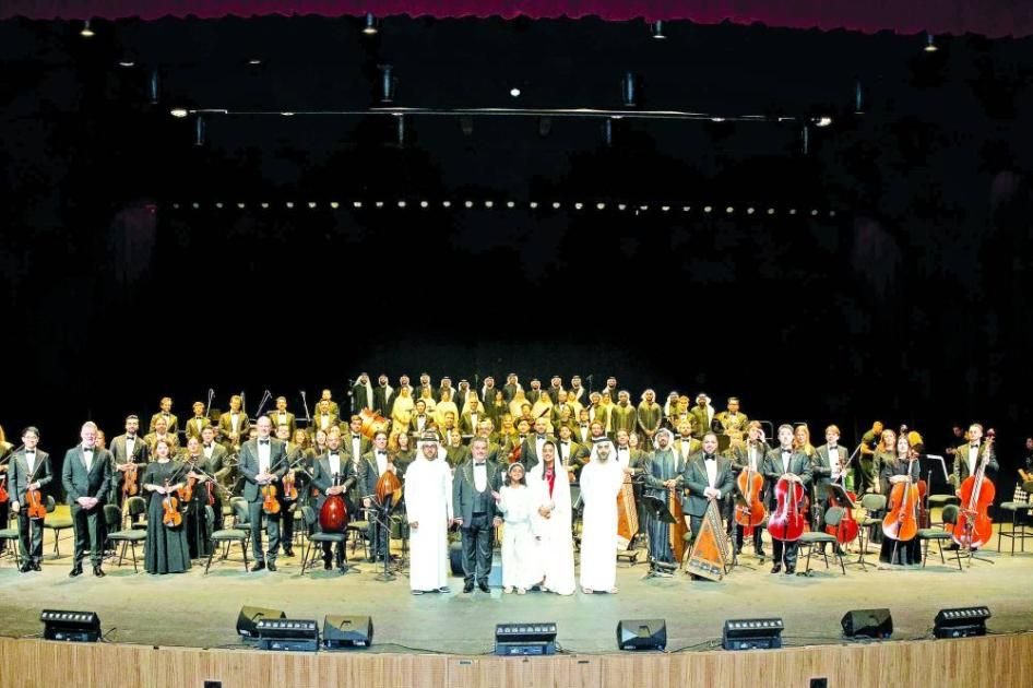 وقدمت الأوركسترا عرضاً متميزاً ارتكزت عناصره الإبداعية على أنماط تقليدية متنوعة من الفنون الشعبية والتراثية في الإمارات، منها التغرودة والعيّالة والآهلة والندبة، ليعبر العرض عن تجربة فنية أصيلة أبرزت قيم الانتماء والتلاحم، وسلطت الضوء على دور الموسيقى في صون التراث وتعزيز الروابط المجتمعية عبر الأجيال. وتضمن الحفل سيمفونية «البداية»، وهي سيمفونية إماراتية تُعرض للمرة الأولى، من تأليف نديم طربي، تمزج بين الأنغام التقليدية والقالب السيمفوني، ومجموعة من المقطوعات الموسيقية العالمية.