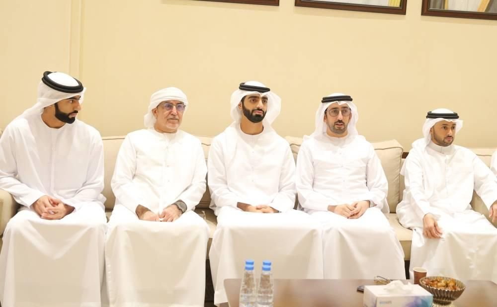 قدَّم الشيخ محمد بن حميد القاسمي، رئيس دائرة الإحصاء والتنمية المجتمعية بالشارقة، والشيخ حميد بن عمار بن حميد النعيمي، عضو المجلس التنفيذي، والشيخ راشد بن عمار بن حميد النعيمي، رئيس دائرة عجمان الرقمية، والشيخ سعود بن سلطان القاسمي، مدير عام دائرة الشارقة الرقمية، والشيخ سعيد بن مكتوم بن جمعة آل مكتوم، رئيس اتحاد الإمارات للتنس والبادل، وعدد من الشيوخ واجب العزاء في وفاة المغفور له بإذن الله تعالى عبدالله مبارك خليفة المزروعي.