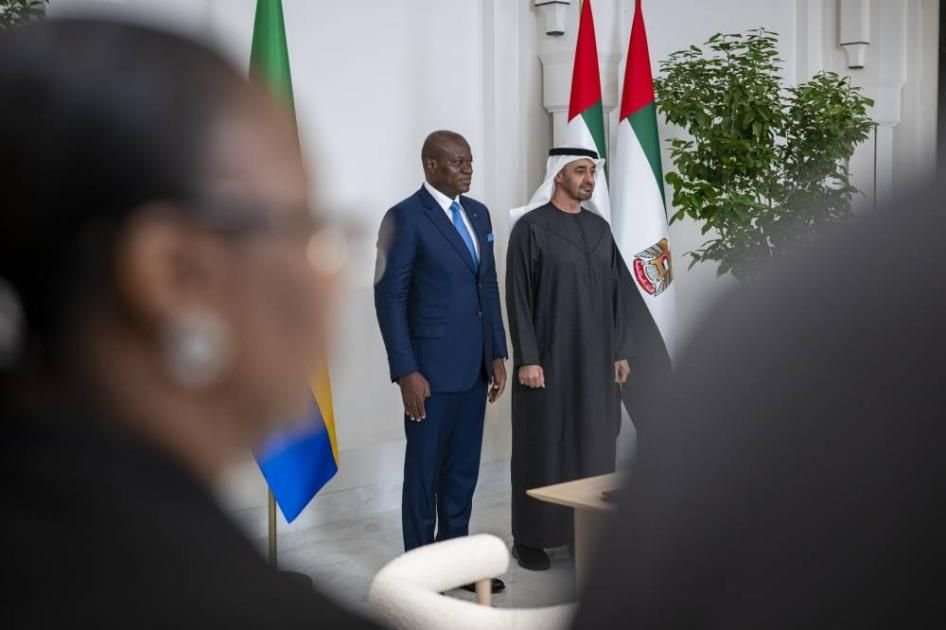 بحث صاحب السمو الشيخ محمد بن زايد آل نهيان، رئيس الدولة، حفظه الله، وبريس أولغي أنغيما رئيس جمهورية الغابون، اليوم، علاقات التعاون، خاصة في المجالات التنموية، والاقتصادية، والاستثمارية، والطاقة المتجددة، والأمن الغذائي، والبنية التحتية، وغيرها من المجالات التي تخدم أولويات التنمية الشاملة والمستدامة في البلدين.