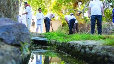 وشملت أنشطة المعسكر تنفيذ أعمال تسوية للطرقات الواقعة بين المزارع، وإزالة الأعشاب والحشائش والمعوقات الناتجة عن فيضانات الأمطار، وما خلّفته من جريد النخيل والمخلفات الطبيعية، إضافة إلى تنظيف سواقي الفلج من الأتربة والأعشاب، وتهيئة مجاري المياه بما يضمن سرعة انسيابها ووصولها إلى المزارع بانتظام.