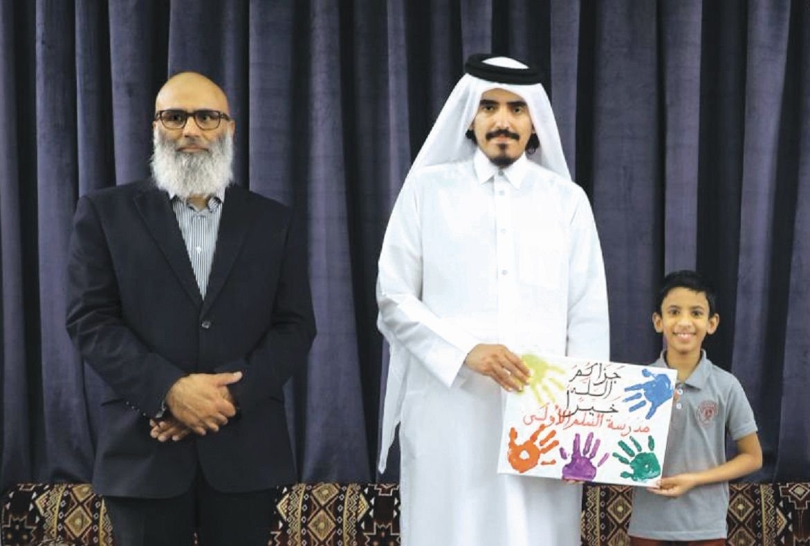 وسلّم الهدايا للطلاب السيد غانم عبد اللطيف الرميحي رئيس قسم التسويق بإدارة المصارف الوقفية بالإدارة العامة للأوقاف.