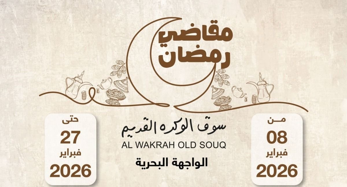 يستضيف سوق الوكرة القديم على الواجهة البحرية فعاليات معرض مقاضي رمضان خلال الفترة من 8 فبراير حتى 27 فبراير 2026، بمشاركة عدد من الشركات، وذلك في إطار الاستعداد لاستقبال شهر رمضان المبارك وتوفير احتياجاته الأساسية للجمهور في موقع واحد وبأجواء تراثية مميزة.