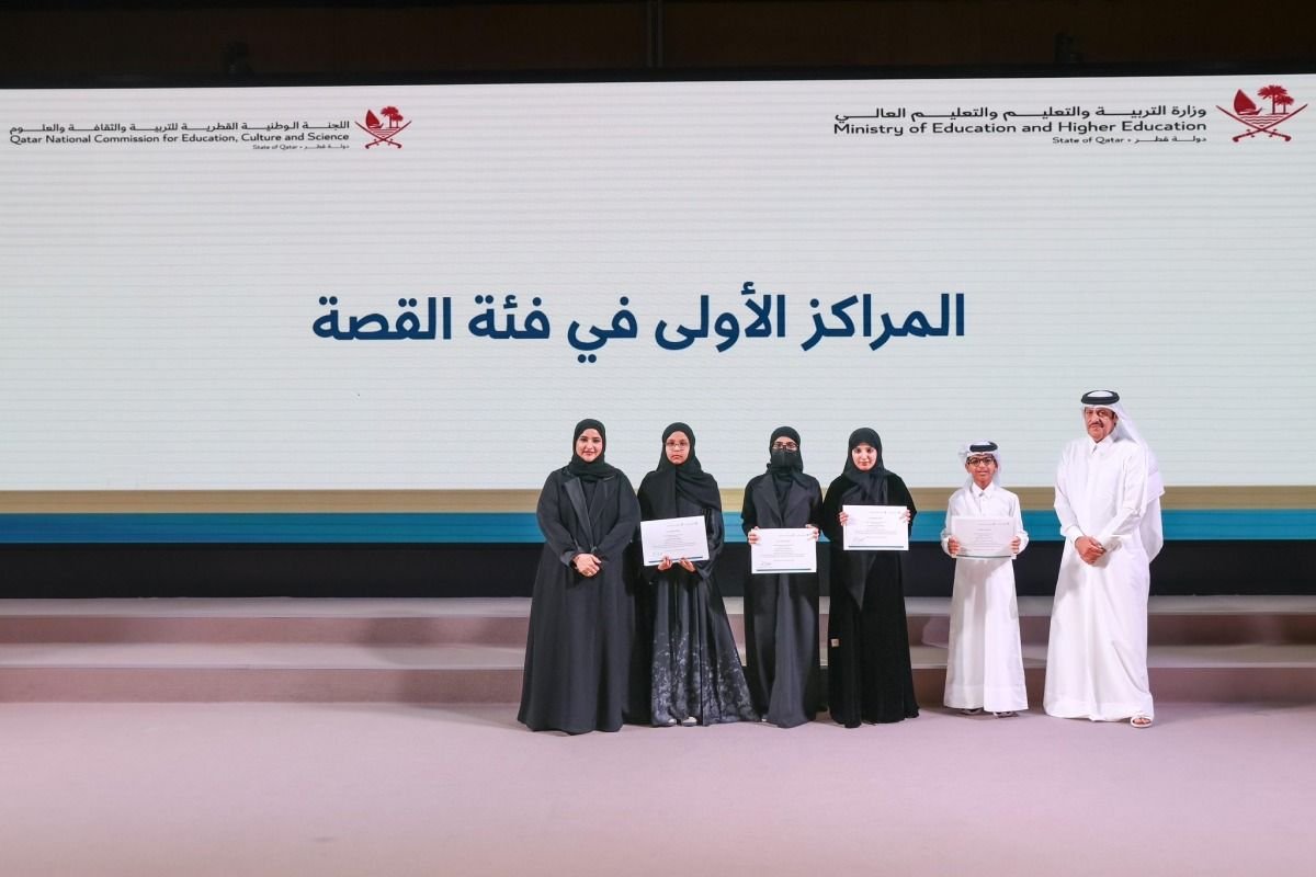 وفي فئة «القصة»، حقق المركز الأول كل من: حسن عبد الله المريخي من مدرسة الذخيرة النموذجية للبنين، ودليلة متوكل إبراهيم من مدرسة موزة بنت محمد الإعدادية للبنات، وفاطمة مبارك الغرينيق من مدرسة هند بنت أبي سفيان الثانوية للبنات، والطالبة وضحة جاسم الحميدي من جامعة قطر. أما في فئة «الخط العربي»، فاز بالمركز الأول الطالب زيد حبيب الله محمد من مدرسة القادسية النموذجية للبنين، والطالبة مريم علي السيد سليم من مدرسة روضة راشد الابتدائية الإعدادية الثانوية للبنات، والطالب مهدي حليمي من مدرسة جاسم بن حمد الثانوية للبنين.
