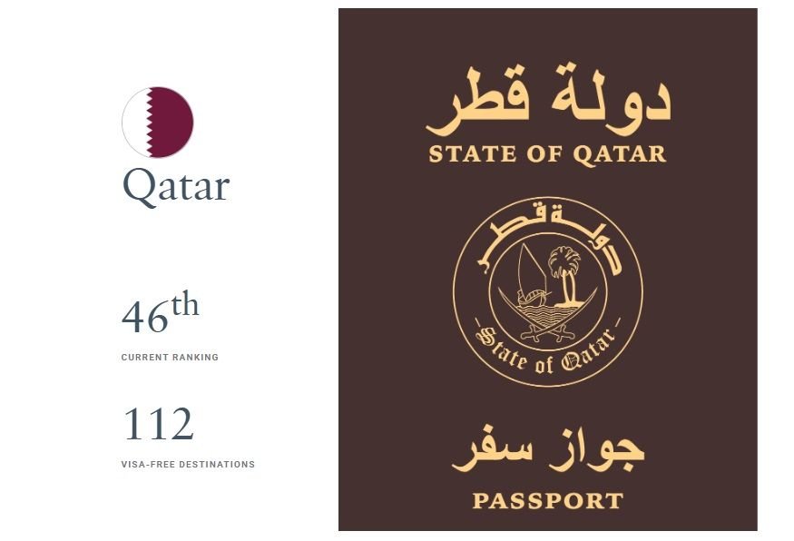 ووفق المؤشر، يسمح جواز السفر القطري لحامليه بزيارة 112 وجهة دون تأشيرة مسبقة.