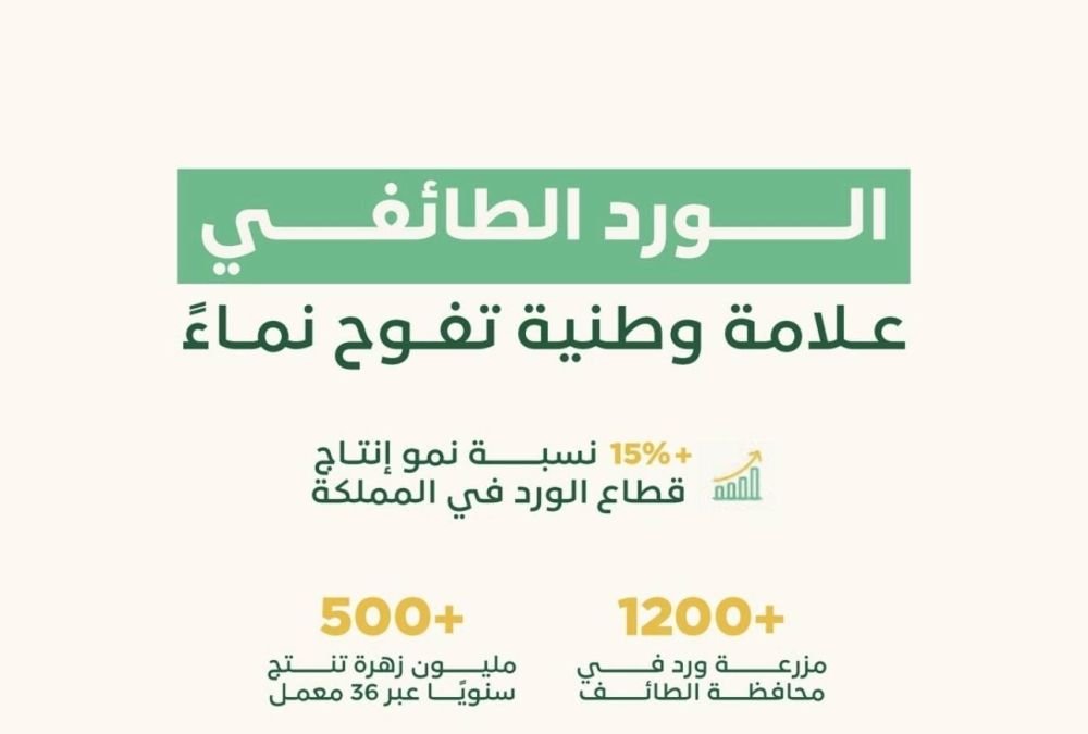 وأضاف أن محافظة الطائف تُعد من أهم مناطق إنتاج الورد في المملكة، حيث تنتشر مزارعه في العديد من المواقع، منها الهدا، والشفا، والحصبا، والقديرين، ووادي محرم، وجنوب الطائف، والحوية، والسيل، وتبلغ المساحة الإجمالية لزراعة الورد بالطائف 700 هكتار، تضم نحو 1300 مزرعة، تنتج نحو 500 مليون وردة، مشيرًا إلى وجود 36 معملًا بالطائف لإنتاج وصناعة العطور، بما تصل قيمته إلى 52 مليون ريال.