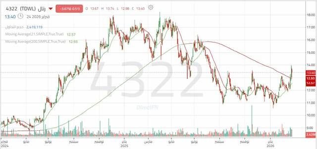 وفي حال تجاوز 14.00 ريال قد يرجح استمرارا الحركة الصاعدة نحو 14.30 ريال – 14.60 ريال اختراق المستوى قد يدعم استكمال الحركة الصاعدة نحو 14.95 ريال – 15.30 ريال. بينما الثبات دون 13.40 ريال يضعف فرص استمرار الصعود على المدى القصير.