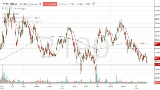 مباشر للأبحاث: رغم تحرك سهم شركة البنى التحتية المستدامة القابضة "سيسكو القابضة" في نطاق عرضي على المدى المتوسط، إلا أن الأداء قصير المدى يعكس اتجاهاً هابطاً ثانوياً نتيجة تراجع الزخم الشرائي. بالإضافة إلى استقرار السعر دون المتوسطات المتحركة الرئيسية يعكس فقدان الزخم الصاعد وهيمنة الضغوط البيعية في الوقت الحالي.