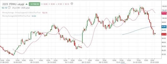 ويعد الثبات دون مستوى 94.05 ريال يرجح امتداد التراجع نحو 90.05 ريال كهدف أول، وفي حال كسره قد تتسارع وتيرة الهبوط نحو 87.80 ريال كمستهدف تالٍ.