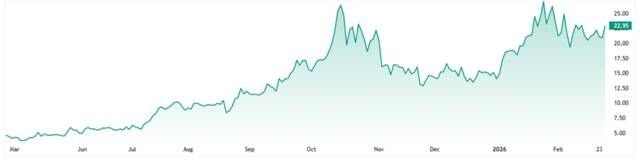 ومع بداية شهر أبريل، نجح السهم في الارتداد الصعودي مدعومًا بارتفاع ملحوظ في أحجام التداول، ليستمر هذا المسار الإيجابي حتى يناير 2026.