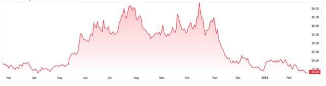 ورغم ذلك، شهد السهم مؤخرًا ارتدادًا صعوديًا ملحوظًا مصحوبًا بارتفاع قوي في أحجام التداول، نجح من خلاله في اختراق مستوى مقاومة مهم قرب 13.35 دولار، ليستهل تعاملات ما قبل الجلسة عند مستوى 13.60 دولار.