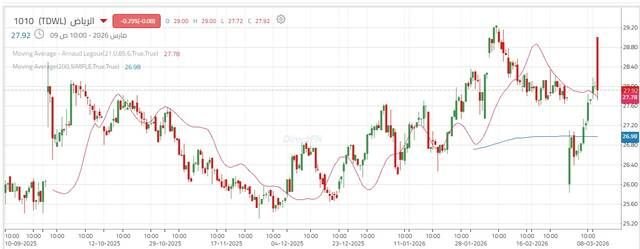 في المقابل، يظل مستوى 27.35 ريال دعمًا مهمًا على المدى القصير، حيث إن التداول دونه قد يعيد الضغوط البيعية ويفتح المجال لمزيد من التراجعات داخل القناة الصاعدة.
