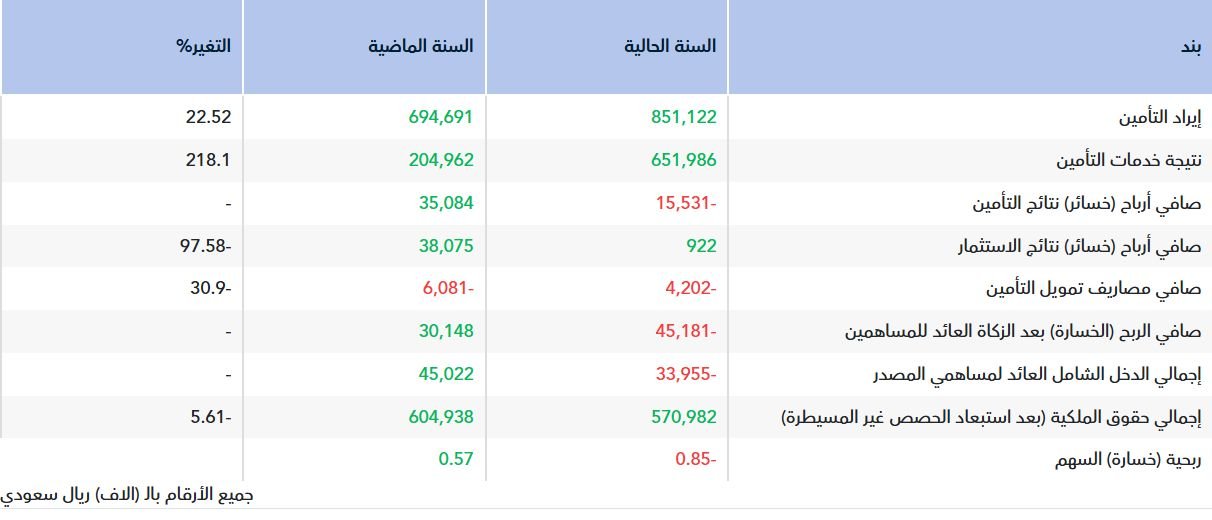 وعلى مستوى الإيرادات، ارتفع إيراد التأمين إلى 851.12 مليون ريال خلال عام 2025، مقابل 694.69 مليون ريال في العام السابق، بزيادة بلغت 22.52%.