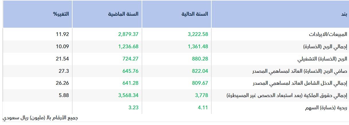 وعلى صعيد الإيرادات، ارتفعت مبيعات الشركة بنحو 11.92% خلال عام 2025، لتصل إلى 3.22 مليار ريال، مقارنة بـ 2.88 مليار ريال في عام 2024.