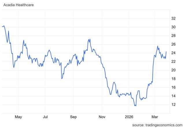مباشر للأبحاث- سجل سهم Acadia Healthcare( ACHC) ارتفاعًا حادًا مع بداية عام 2026، بعدما صعد من 11.60 دولارًا إلى 25.75 دولارًا، مدعومًا بتكوين قمم وقيعان صاعدة، إلى جانب اختراق المتوسطات المتحركة الرئيسية، ما يعكس تحسنًا واضحًا في معنويات المستثمرين وزيادة الطلب على السهم.